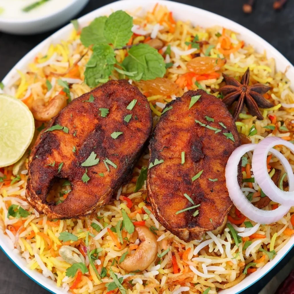 Embark on a seafood adventure with our Fish Biryani. Tender pieces of fish, marinated in fragrant spices, are expertly cooked with long-grain Basmati rice, creating a symphony of coastal flavors. Every bite is a journey through the ocean’s spices and the richness of Basmati rice. Aromatic, seafood-infused, and truly delicious.