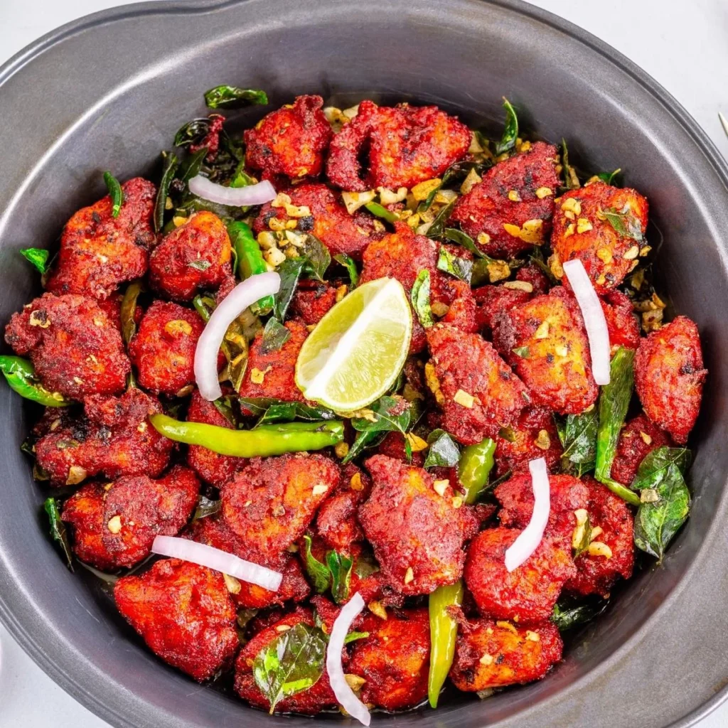 Prepare for an explosion of flavor with our Chicken 65. Tender chicken pieces are marinated in a secret blend of spices, deep-fried to perfection, and tossed in a zesty sauce. Each bite is a harmonious dance of textures and flavors, with the crispy exterior meeting the succulent and spicy seasoning. A dish that beckons you to savor its delightful and fiery charm.