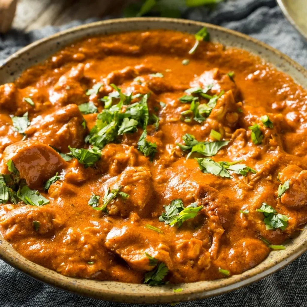 Indulge in the luscious and flavorful world of our Butter Chicken Masala. Tender chicken pieces are simmered in a rich and aromatic tomato-based gravy, enriched with butter and cream, and garnished with fresh coriander. Each bite is a burst of culinary artistry, with the succulent chicken meeting the creamy and savory sauce. A dish that beckons you to savor its delightful and indulgent charm.
