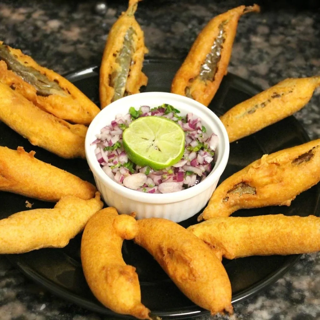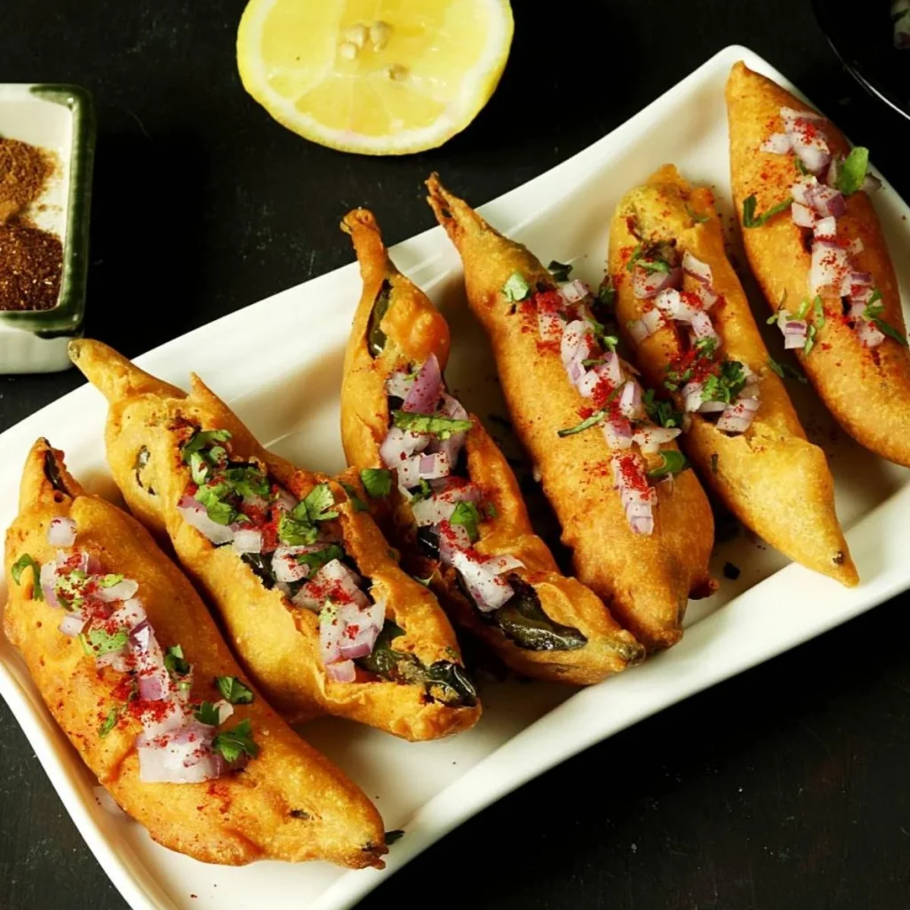 Prepare for an explosion of flavor with our Mirchi Bajji. Vibrant green chilies, delicately coated in a spiced gram flour batter, are deep-fried to golden perfection. Each bite is a harmonious blend of heat, spice, and mouth-watering satisfaction. A snack that beckons you to dive into its irresistible warmth.